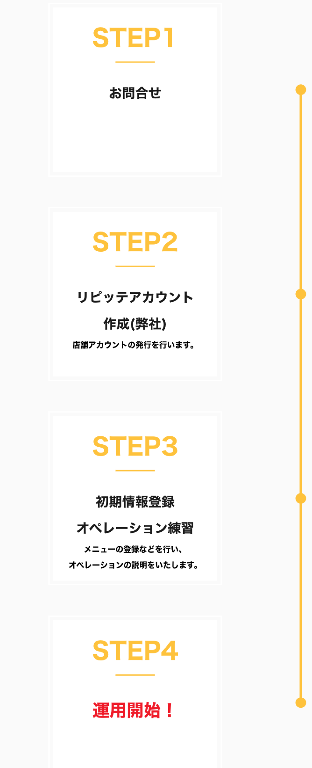 リピッテは、飲食店様がお使いいただけるテイクアウト・デリバリーの注文システムです。 集客やユーザーの獲得は飲食店様の方で行っていただく必要があります。またデリバリー・宅配についても自店のスタッフで行うか、配達業者との連携をいただく必要がございます。